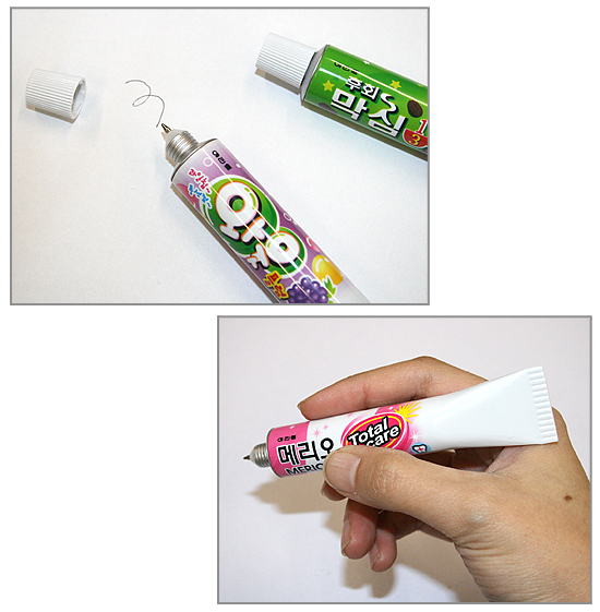 チューブの形をした、パロディボールペンです。