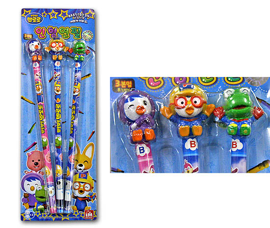 韓国キャラクター ポロロ 人形付鉛筆 3本セット(A)
