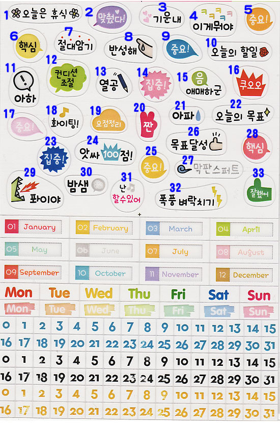 7.ファイト! 8.よくやった! 9.熱勉 10.全て上手くいくだろう 11.ヤッター100点! 12.アジャ!