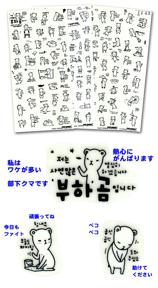 韓国で人気の「部下クマ」キャラクターの ハングル(韓国語)ステッカー(シール)です。