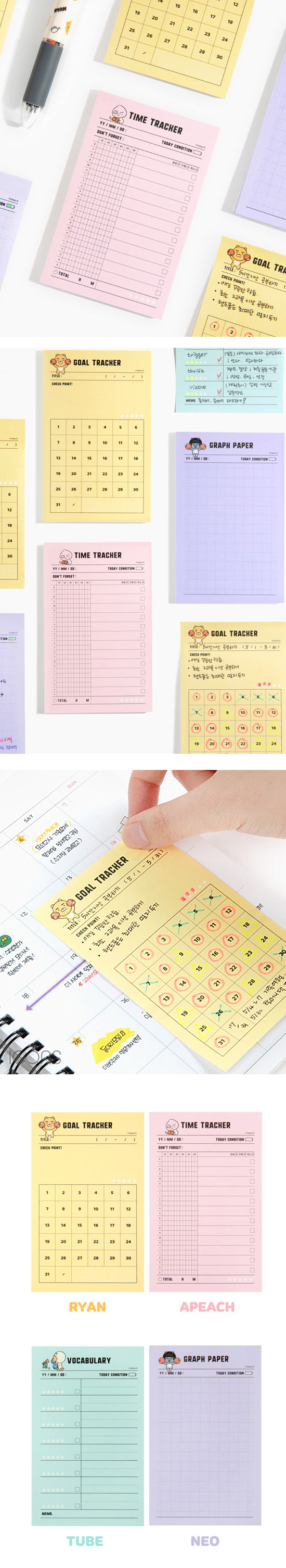 韓国の人気キャラクター「カカオフレンズ」のスタディ付箋です。